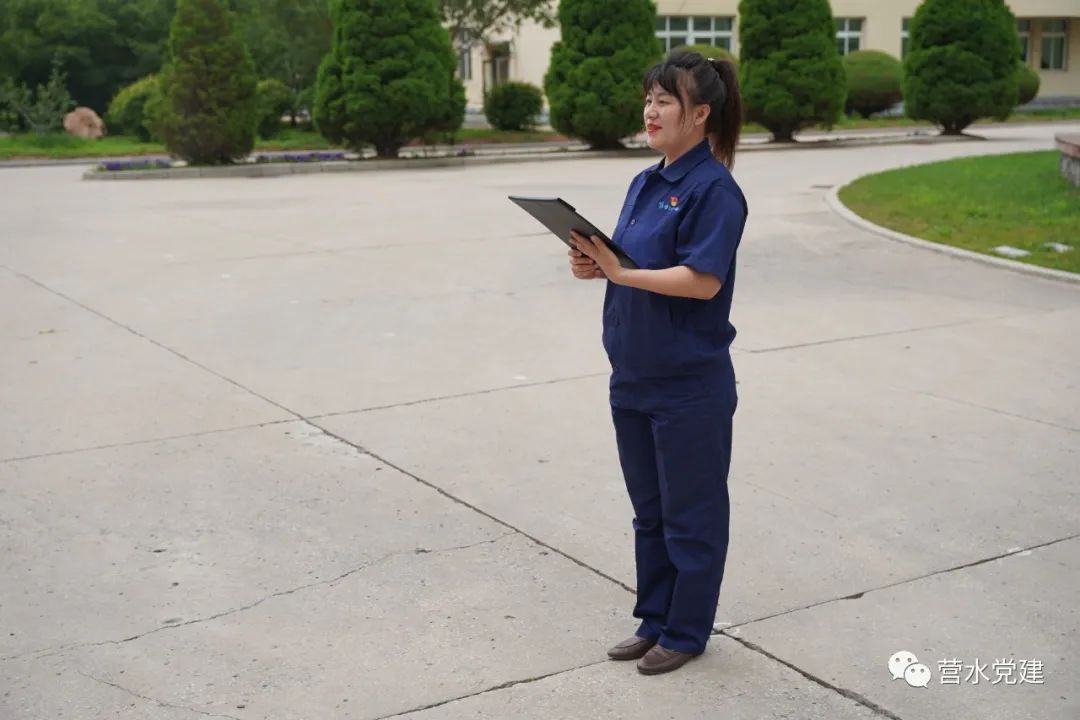 全體黨員整齊著裝,在辦公樓前列隊,英姿颯爽的護旗手邁著鏗鏘有力的步伐,托舉五星紅旗走向升旗臺。