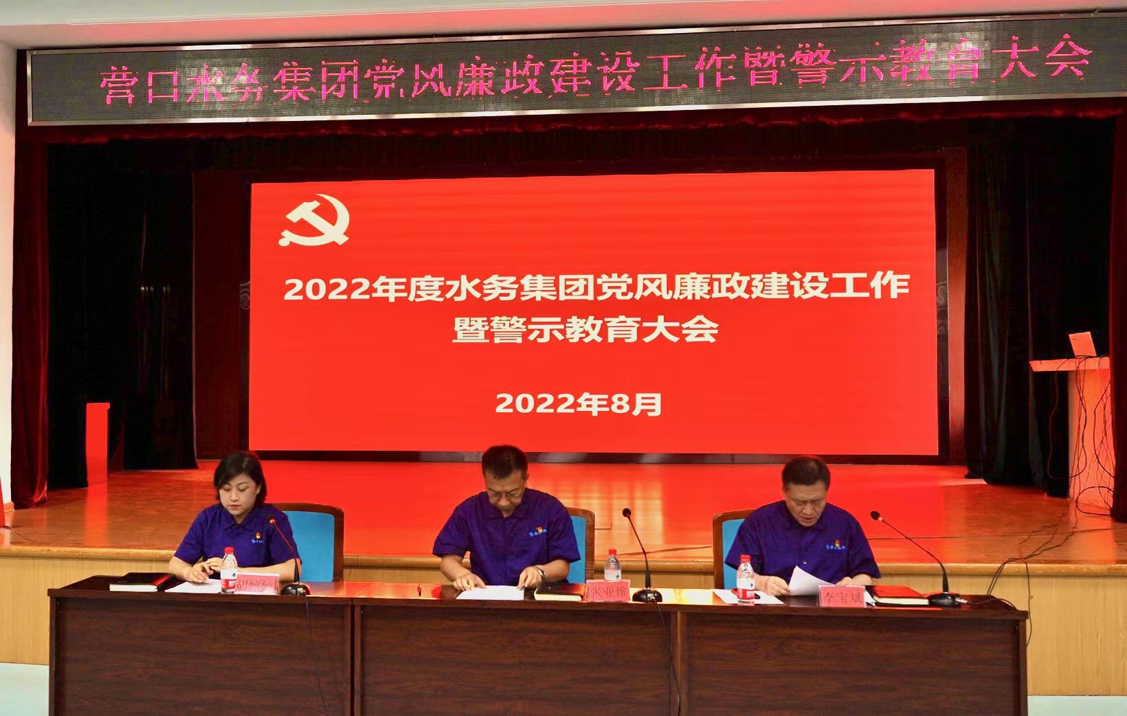 8月3日下午,水務(wù)集團(tuán)黨委召開2022年黨風(fēng)廉政建設(shè)工作暨警示教育大會(huì)。領(lǐng)導(dǎo)班子成員、各部門基層單位負(fù)責(zé)人及黨支部書記參會(huì)。會(huì)議由黨委副書記、總經(jīng)理李寶斌同志主持。