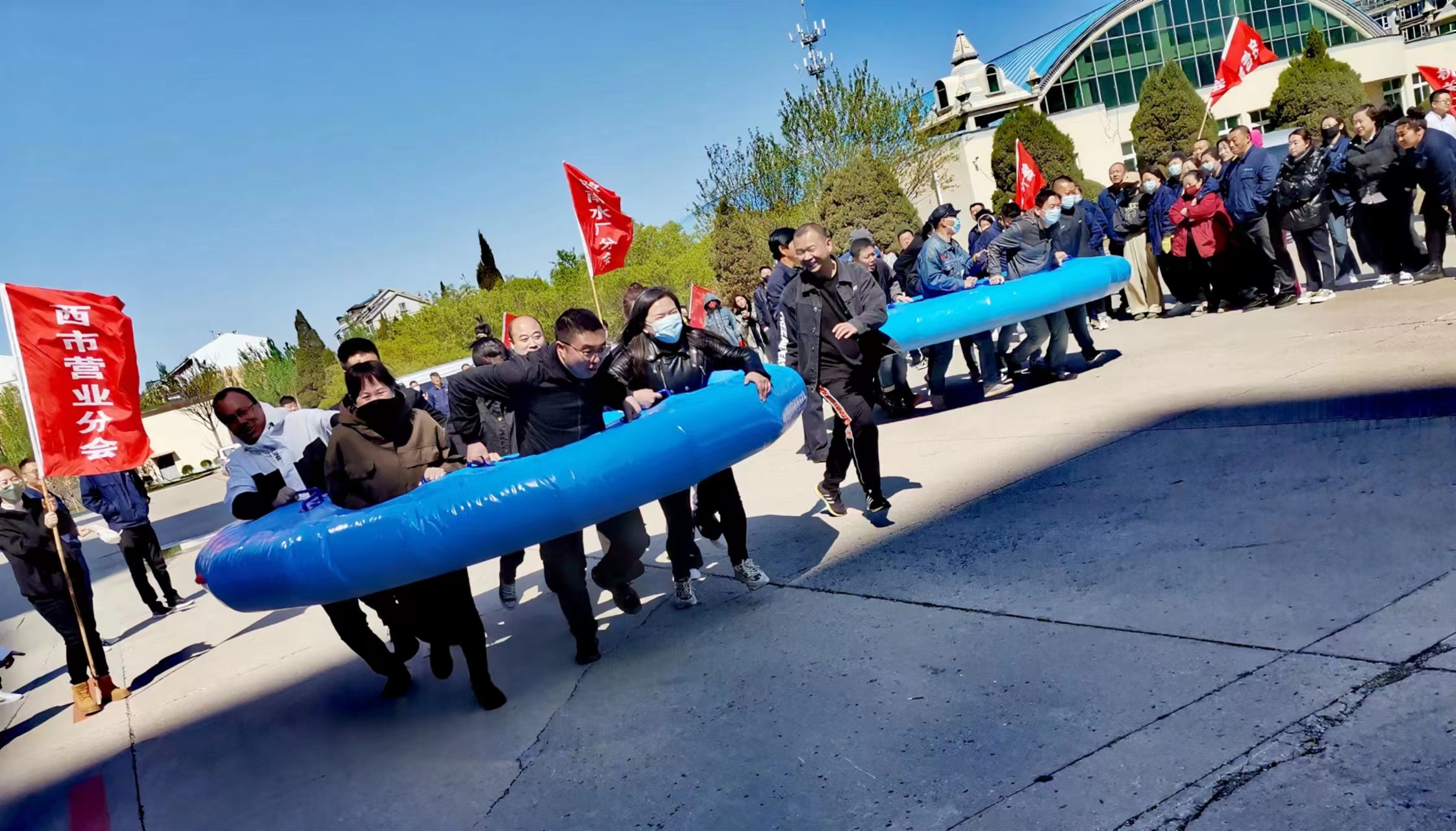 4月26日上午8:20分,集團(tuán)公司領(lǐng)導(dǎo)與基層工會(huì)干部和會(huì)員近500人,集聚于公司樓前廣場(chǎng),相繼展開(kāi)了“眾人劃槳開(kāi)大船”和“八仙過(guò)?!眱身?xiàng)趣味性團(tuán)體拓展活動(dòng),寓意和引導(dǎo)眾人心往一處想、勁往一處用,以默契的團(tuán)隊(duì)協(xié)作攻堅(jiān)克難。