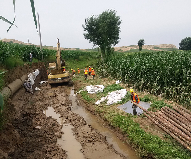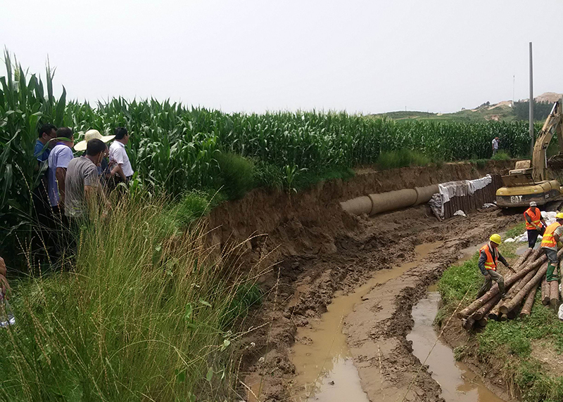 近日,水務集團組織管網(wǎng)巡查人員排查石門水庫三道嶺系列輸水管線時,發(fā)現(xiàn)位于大石橋湯池鎮(zhèn)黃土嶺村DN900線的輸水管線嚴重裸露在外,如果不及時處理,再遇雨天,極易發(fā)生輸水管線斷裂,將會造成沿途及營口城區(qū)營口鋼鐵有限公司等數(shù)十家工業(yè)用水大戶及市區(qū)東部周邊部分居民用戶生產(chǎn)生活用水。水務集團發(fā)現(xiàn)安全隱患后,科學謀劃,積極制定有效方案,并現(xiàn)場指揮??紤]到若在汛期改線,前期征地、動遷等工作無法在短期時間內(nèi)完成,為保證供水安全度汛,在緊急狀況下,水務集團及時采取打樁護管、填土、壘石等措施,進行應急處理,加固輸水管線,防止管道發(fā)生斷裂。