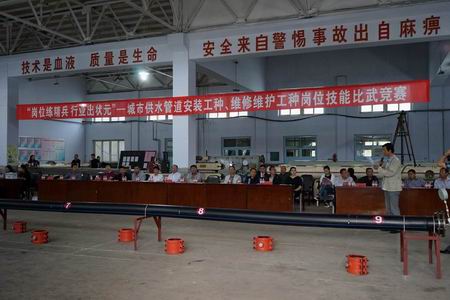 為深入推進學(xué)習(xí)型企業(yè)和員工隊伍建設(shè),不斷激發(fā)促進職工學(xué)習(xí)專業(yè)技術(shù)、熟練崗位業(yè)務(wù)的積極性,努力提升自身技能素質(zhì)和企業(yè)服務(wù)社會、服務(wù)民生的質(zhì)量水平,8月31日,水務(wù)集團與市總工會聯(lián)合舉辦了“城市供水管道安裝工種、維修維護工種崗位技能比武競賽”。市總工會常務(wù)副主席相燾同志,以及市總工會其他相關(guān)部門的負責(zé)同志出席競賽。集團公司董事長、總經(jīng)理、黨委副書記王霄同志、黨委書記戴宏偉同志及集團公司全體領(lǐng)導(dǎo)班子和本次競賽領(lǐng)導(dǎo)小組的其他同志,以及新聞媒體朋友受邀觀摩了此次競賽。